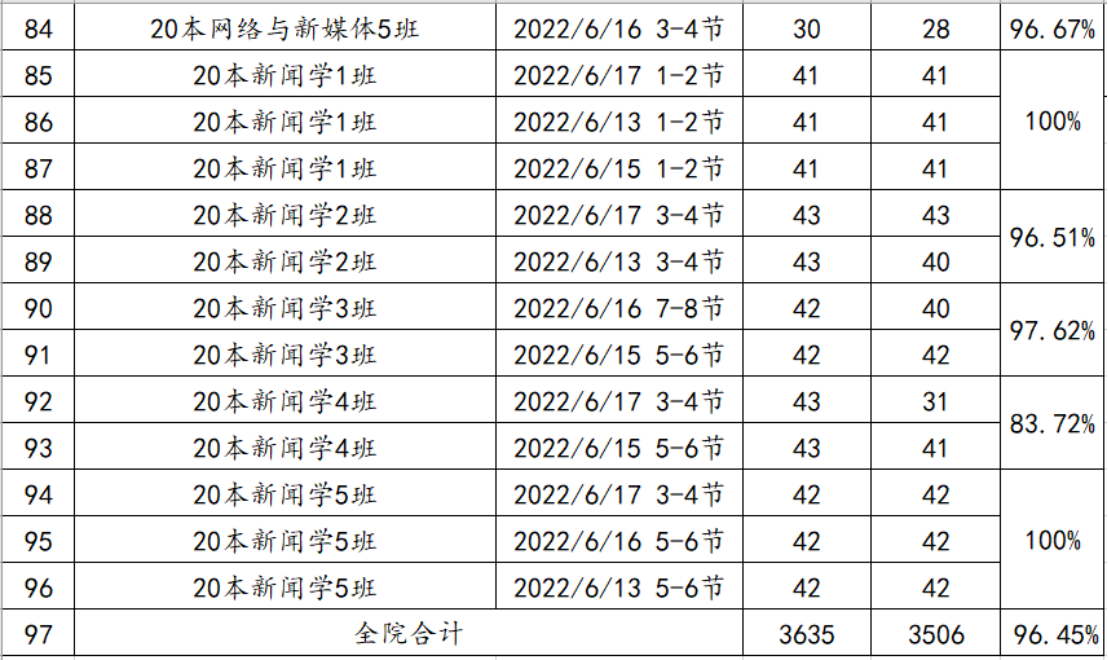 (一)原则上每周每个班课堂检查情况不低于2次,根据平均到课情况计算出勤率。