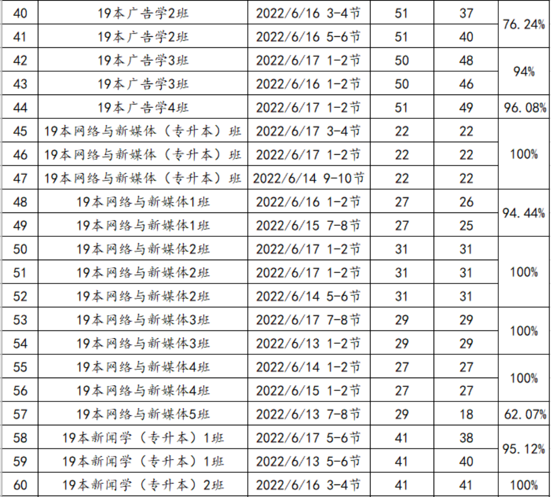 (三)以上查课情况,如有误的,请向各班辅导员老师反馈(须提供事实依据),经核实后,学院将统一修正。