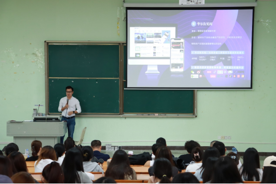 进而,焦鹏先生提到“财经媒体销售”这一职业,拓展了同学们的就业视野,并向同学们解释其工作内容是沟通拜访,价值输出,结果闭环;其工作获得是体面的薪酬,较高的职业尊严,行业多元、客户多元、地域多元、文化多元;其需要的素养是道德和诚信,表达能力强,学习能力强,持续的热情。