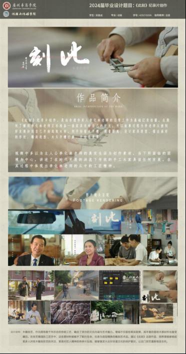增城荔枝木雕刻非遗传承人李化林老师,对进行非遗纪录片创作的学生进行了称赞和鼓励;他肯定了纪录片创作对非遗文化的宣传作用,并对毕业展的举办表示大力支持。李化林老师说道:“纪录片创作对于非遗文化的宣传与传播起到了很大的作用,这几年有许多学生都拍摄了荔枝木雕刻非遗纪录片,质量也是一年比一年好,非常感谢学校以及学生们对增城荔枝木雕刻的宣传与推广。”