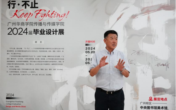 视频传播系主任戴金玲老师在致辞中代表系里向各位嘉宾、师生的到来致以欢迎与感谢。并对学生们在作品创作上的成长与表现表示高度肯定对学生们致以最诚挚的祝福。戴老师说道:大家从怀揣梦想踏入艺术殿堂的新生逐渐成长为专业人才,今天展出的每一件作品都凝聚着大家的智慧与汗水。立足广东,以讲好广东故事、聚焦现实生活为方向,不断突破自我,希望毕业生们在未来用画笔和镜头展现更多独特的创意