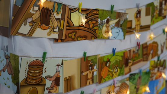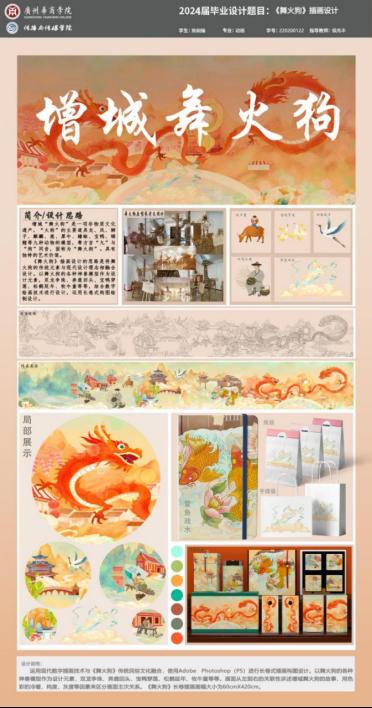 设计阐述:增城“舞火狗”是市级第二批非物质文化遗产之一,又名“麻车夜色”,是一项村民共同抗瘟疫的仪式,后演变为欢庆的民间艺术,作品采用了水墨国风画结合的形式绘制成绘本,将非遗文化内涵和技艺与水墨画的艺术表现结合,促进了文化宣传与精神感悟。将传统民间技艺活动与中国独特的水墨画表现形式相结合,不仅为传统水墨画与现代绘本设计的结合提供了探索与尝试,也为文化传承与创新注入了新的活力。