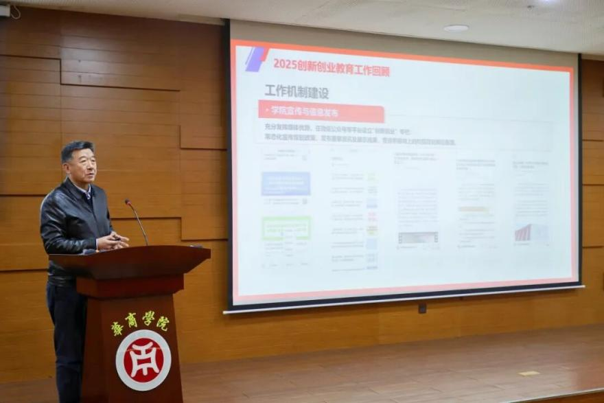 会议伊始,余家军副校长系统总结了2025年度学校创新创业教育工作取得的进展与成绩。他表示,过去一年,学校紧扣国家创新驱动发展战略与粤港澳大湾区建设需求,坚持以商科特色为基础、以人工智能技术赋能为主线,深入推进创新创业教育与人才培养全过程有机融合。众多成绩的取得,凝结着全校师生的共同努力,充分体现了各学院协同联动、以赛促教、以创育人的扎实成效。